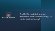Hi Community, Starting from July 2024 there was an issue regarding the enablement of Keyvault during the setup assitant on macOS. You can read the full article here. In this article Microsoft mentiones that there is a workaround: If you’re experiencing an issue where the device doesn’t prompt to enable FileVault during … Continue reading Enable Filevault during setup assistant on macOS not working? – It works great, seriously!