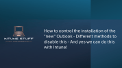 Hi Community, Let’s start with a question. Do you like the “new” Outlook? If you are like me and your answer is no then i invite you to read further. The “new” Outlook, according to Microsoft, is a native application, based on WebView2. The experience is provided by Outlook on the web but is given … Continue reading How to control the installation of the “new” Outlook – Different methods to disable this – And yes we can do this with Intune!